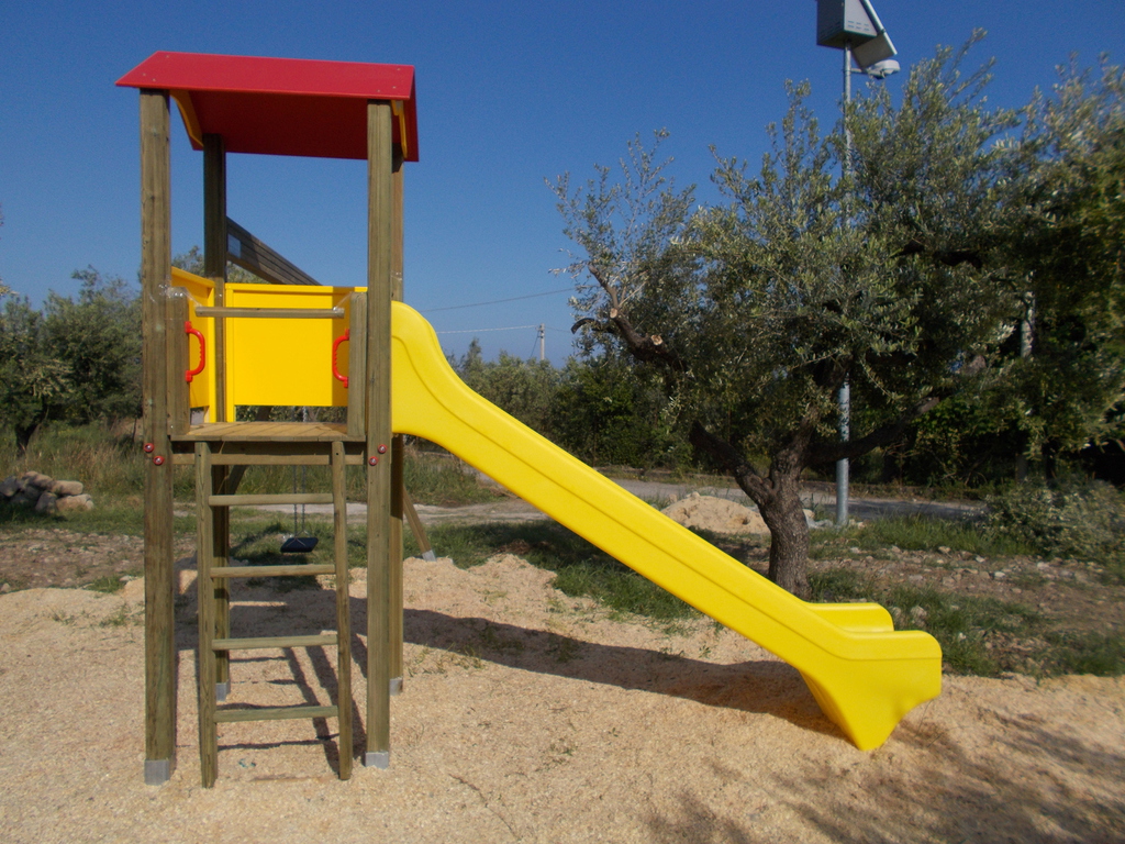 - N. 1 scivolo in polietilene di altezza 147 cm, disponibile in vari colori (giallo-rosso-blu), realizzato con sistema rotazionale tubolare certificato TUV;